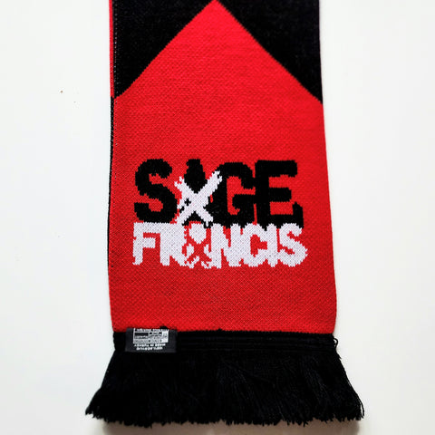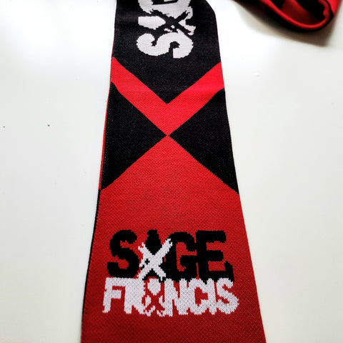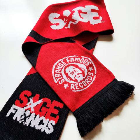 Protect ya neck in Strange Famous style with the Sage Francis Scarf, featuring his "A Healthy Distrust" era graphics + the SFR logo!